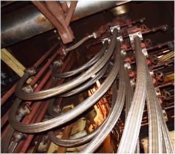 Our Hot Oil Hoses are expertly crafted from annularly corrugated stainless steel, specifically utilizing grade A240M 316L, designed for the efficient transport of water or thermal oil. These hoses are rated for a maximum pressure of 10 bar and can withstand temperatures up to 232°C. The model specifications include an R-650 mm length and Type RS331L121, featuring either single or double-ply stainless steel wire braiding made from A580M 304.